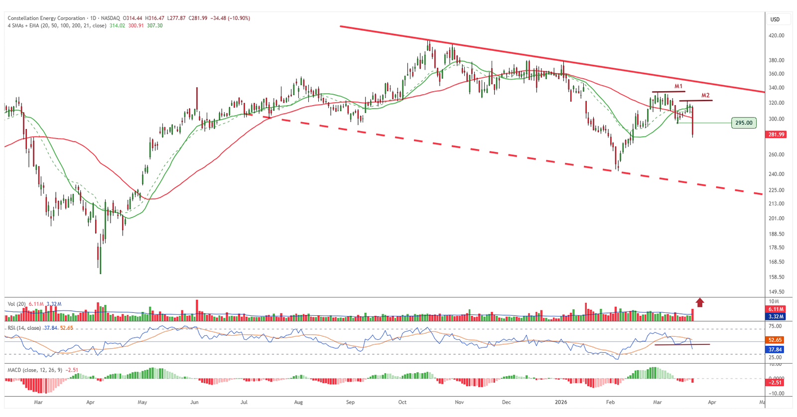 La caída superior al 11% en una sola sesión refleja un deterioro técnico evidente. El valor venía mostrando ya una estructura débil, con máximos decrecientes, y la pérdida simultánea de soportes y medias móviles ha terminado por confirmar ese contexto negativo. El movimiento no solo invalida el planteamiento previo, sino que refuerza la importancia de respetar el sistema y la gestión del riesgo. El comportamiento reciente deja pocas dudas sobre el cambio de tono en el corto plazo.