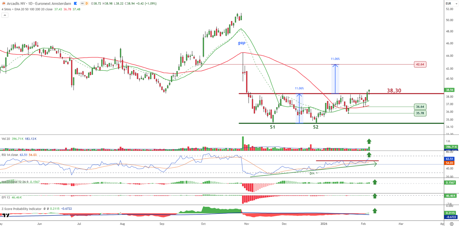 Arcadis: ruptura de rango lateral y activación de figura alcista