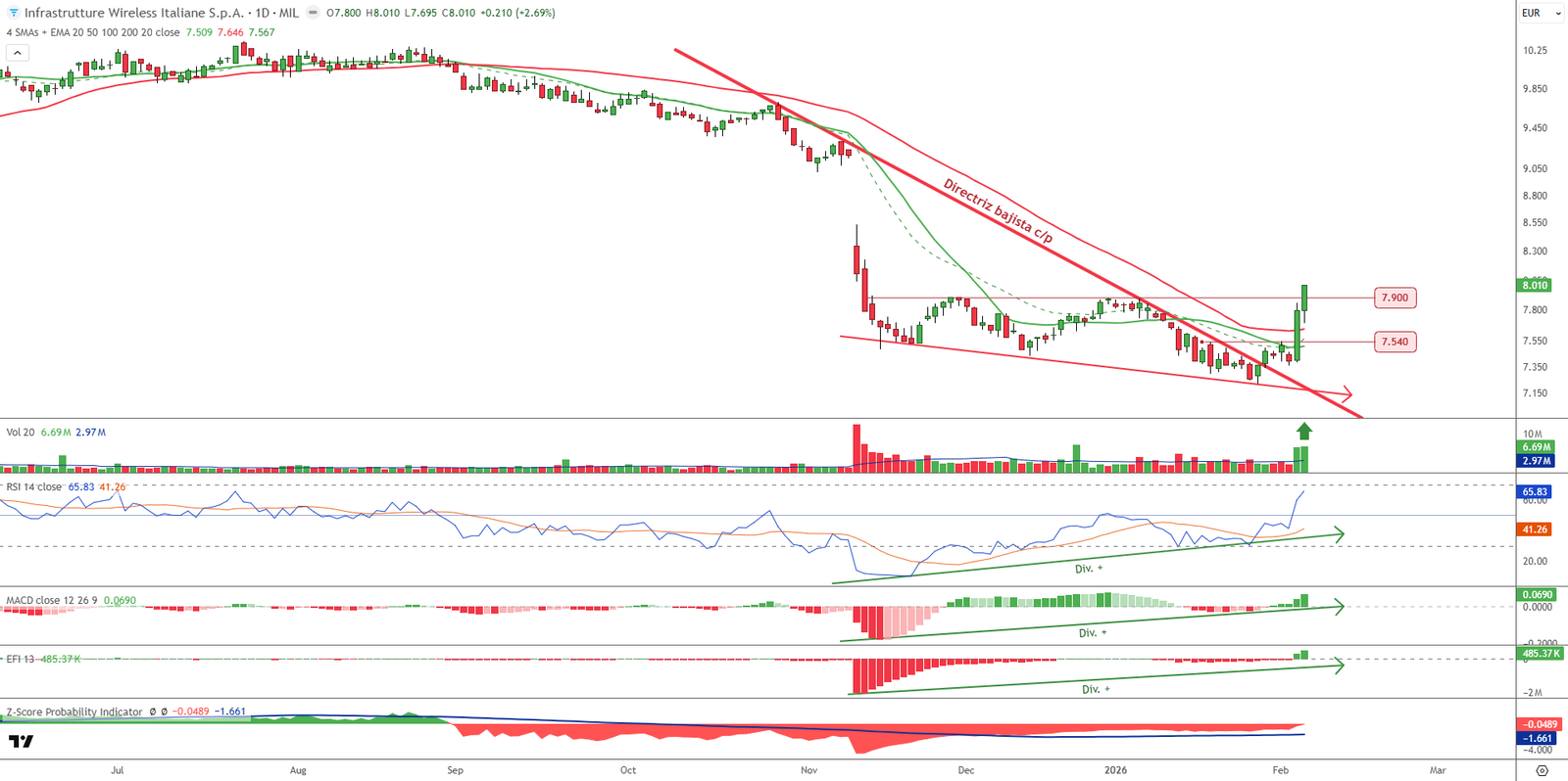 Inwit: ruptura de resistencia y fortaleza en precios de cierre